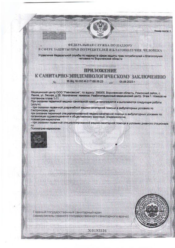 Наркологический реабилитационный центр Равновесие - это учреждение широкого профиля, предлагающее специально подобранный комплекс процедур для каждого клиента. В работе клиники все построено с учетом максимального комфорта для посетителей. Оборудование кабинетов позволяет провести диагностические исследования организма пациента для составления программы лечения и профилактических мероприятий. В клинике открыты отделения психиатрии, общей терапии, аллергологии, психотерапии, наркологии. Наши работники имеют высокую квалификацию и с пониманием отнесутся к вашим проблемам. Доверяя свое здоровье нам, вы можете быть уверены в результате.